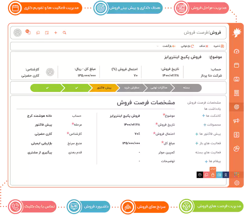 نرم افزار CRM دانا به مدیران فروش کمک میکند تا با سرعت و دقت بیشتری بتوانند تیمهای فروش را مدیریت کنند.