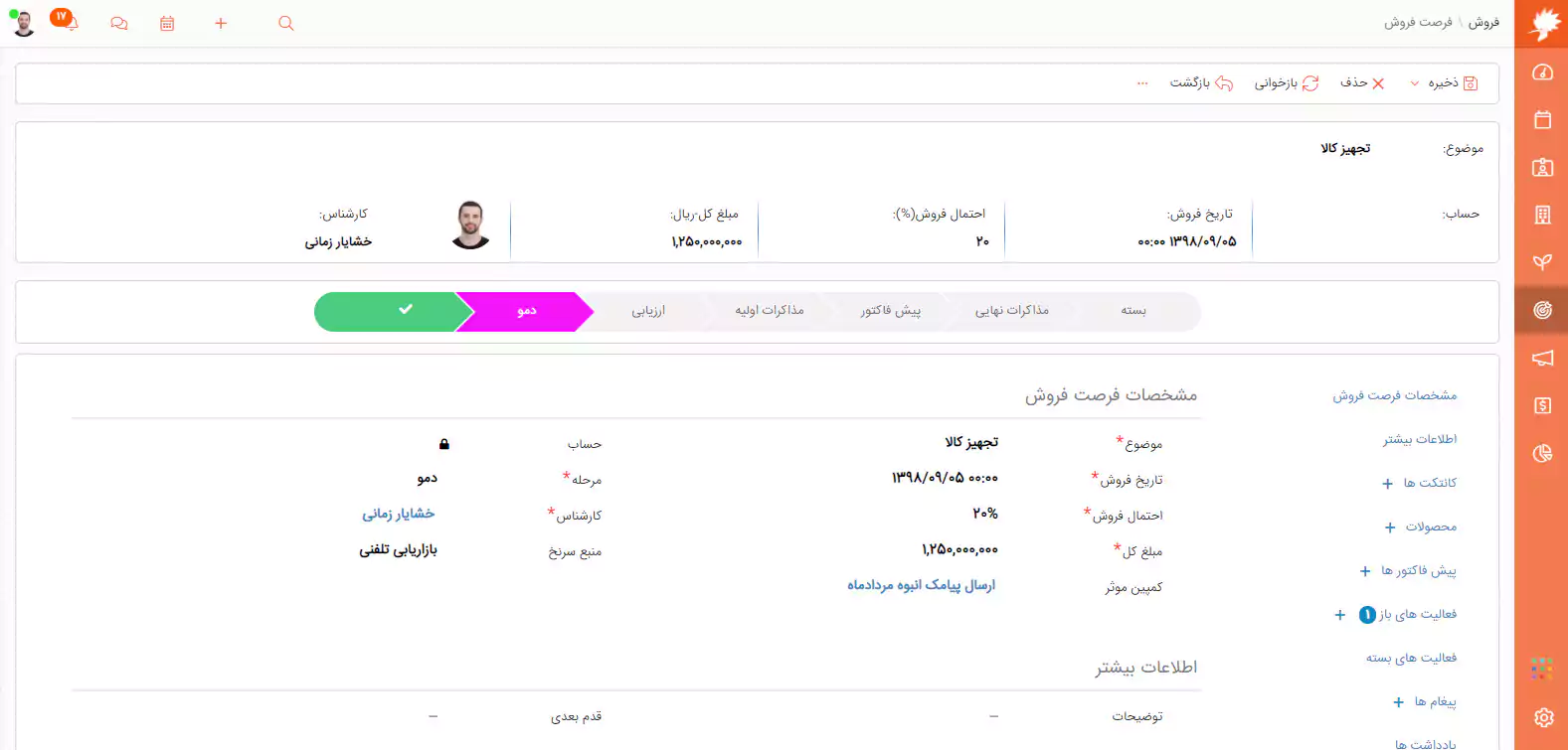 در یک نگاه از وضعیت همه فرصت های فروش در نرم افزار CRM خود مطلع شوید