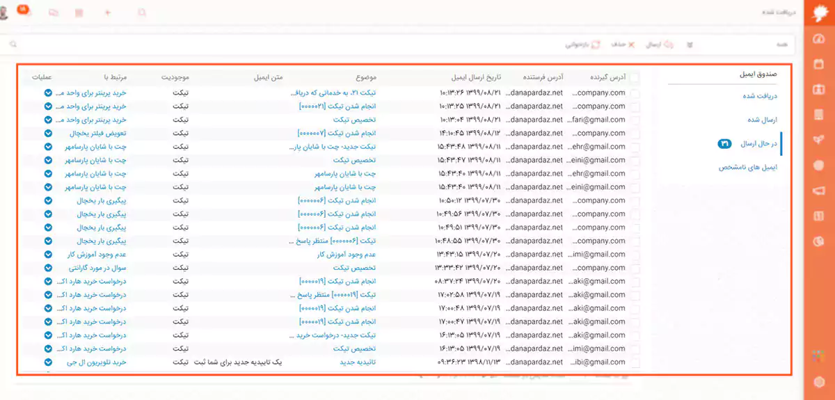 مدیریت صندوق ورودی ایمیل در نرم افزار CRM دانا